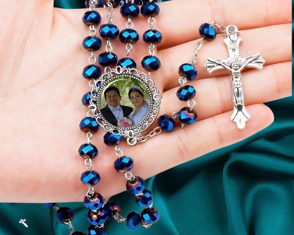 AZUL Personalizado Foto Rosario, Regalos- Boda, Comunión, Recuerdo Conmemorativo Rosarios, Reconocimiento de Condolencias