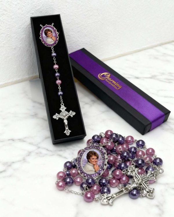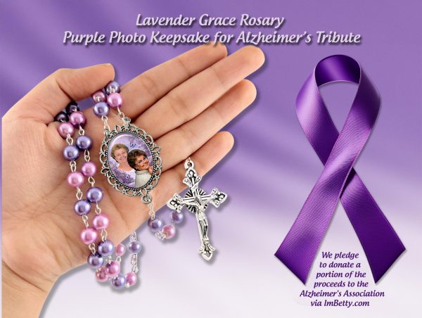 This elegant photo rosary is part of our Alzheimer's Collection — a heartfelt tribute in lavender and purple, handcrafted with care and reverence.
