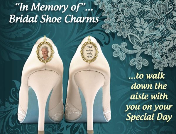 An incredible “finishing touch” for your wedding day! These beautiful shoe charms will hold your Loved One with you as you walk down the aisle. An honorable way to memorialize someone who cannot be with you. Very symbolic and heartwarming all at the same. time. Your photo will be personally designed and handcrafted by me with the elegance and dignity it deserves for your Special Day. If you want “Something Blue” I would be honored to put a subtle Blue Background (within your picture) to give it dual meaning. See color choices in my other photos of this listing.