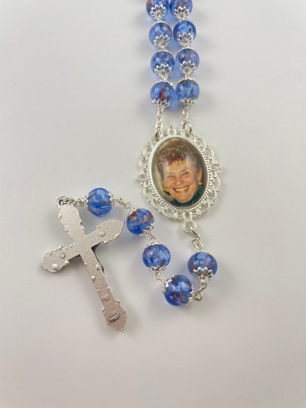 Custom Made Rosary Beads & Personalized with Your Picture, Quinceanera, Anniversary or Something Blue Rosaries, Memorial Remembrance