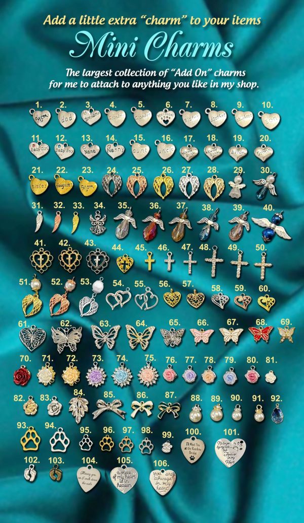 PLEASE ALSO NOTE: Charms are "water resistant" not "waterproof" and should NOT be immersed in water. Please share this with the person you are giving this gift to as well.