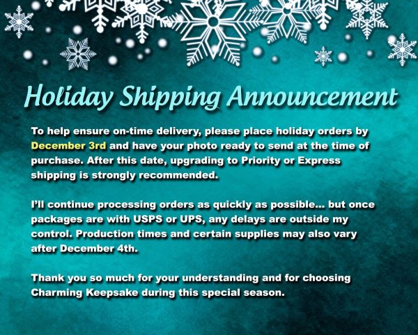 NOTE: We also offer One-Day Rush Processing Service as an Upgrade for an additional $10 fee to be shipped out next day (sometimes same day – depending on the time of day we receive it).