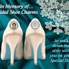 These beautiful memorial shoe charms attached to your bridal shoes with pinch bails (included with your purchase). You simply "pinch" tightly on the back (or front) of your shoes, or even place them on the sides of the shoe (towards back). Works with most style shoes, including flats, as well. Please note… that the pinch bails can create small pin holes to your shoes, so only do this if you are aware of this possibility).