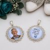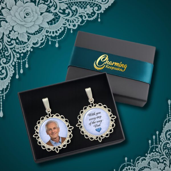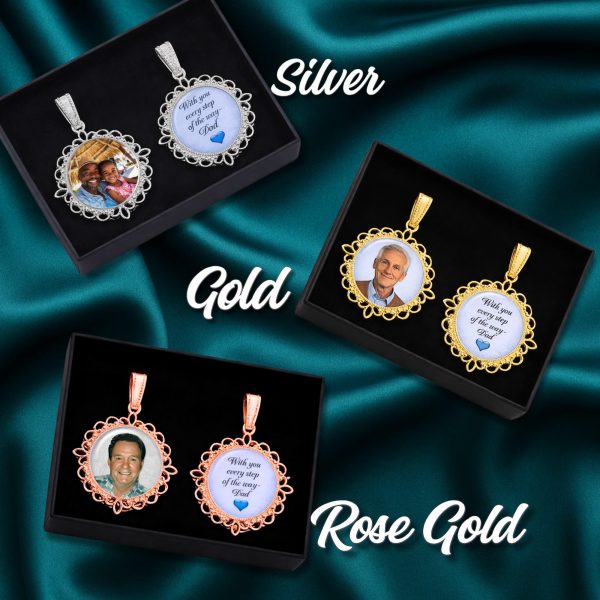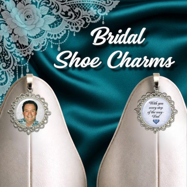 An incredible “finishing touch” for your wedding day! These beautiful shoe charms will hold your Loved One with you as you walk down the aisle. An honorable way to memorialize someone who cannot be with you. Very symbolic and heartwarming all at the same. time. Your photo will be personally designed and handcrafted by me with the elegance and dignity it deserves for your Special Day. If you want “Something Blue” I would be honored to put a subtle Blue Background (within your picture) to give it dual meaning. See color choices in my other photos of this listing.