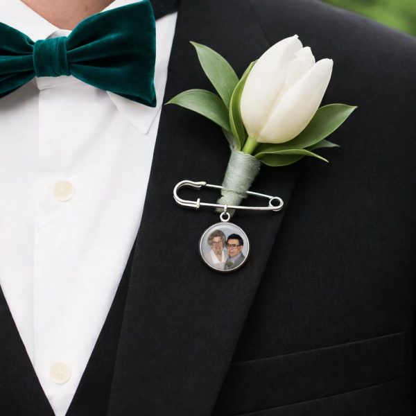 Whether honoring parents, grandparents, or loved ones, this refined photo lapel pin offers a subtle yet powerful way to keep those who matter most close throughout the day.