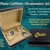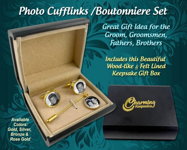 We've just now added our NEW Cufflinks GIFT SET which includes a matching Boutonniere Pin personalized with your picture and includes a beautiful wood-like, felt lined luxurious gift box. (see other listing photo).