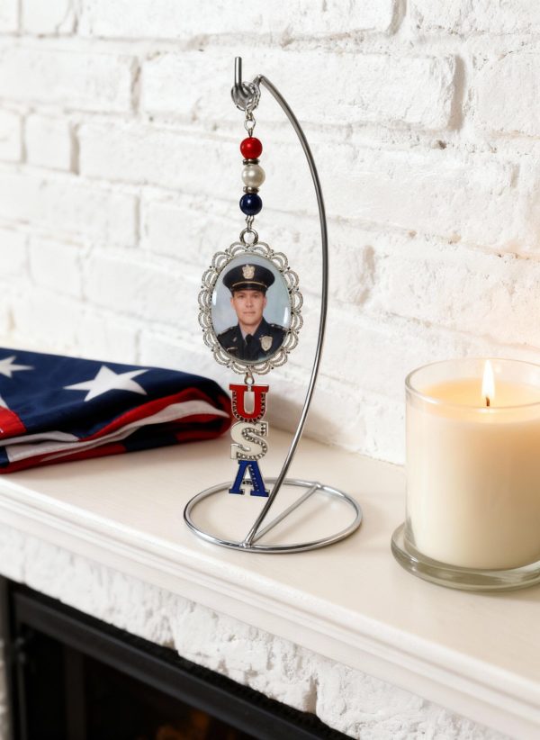 For the servicemen, patriots, and heroes in your life — whether military, law enforcement, or first responders — this handcrafted Patriotic Photo Charm Ornament will warm hearts and honor service. Personalized with your photo and accented in red, white, and blue, it’s a meaningful keepsake of faith and gratitude.