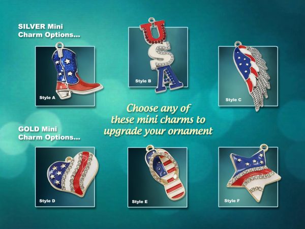 Each ornament includes free photo restoration, a felt-lined jewelry-quality gift box, and your choice of silver or gold finish. The Flag Cross charm is included as standard, or you may customize it with one of six mini charm upgrades: Heart, Star, Flip-Flop (for Gold), Cowboy Boot, USA Letters, or Wing (for Silver).
