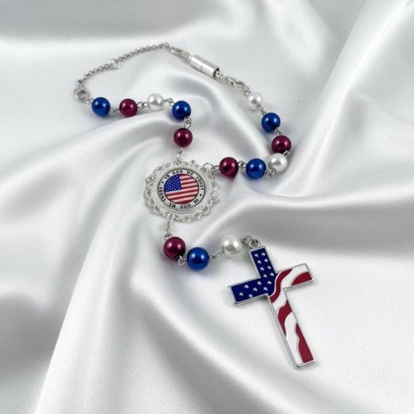 Keep a daily reminder of faith and freedom close by with this handcrafted Patriotic Car Rosary. Designed in symbolic red, white, and blue beads, it honors the courage and devotion of those who serve while offering comfort, prayer, and protection.