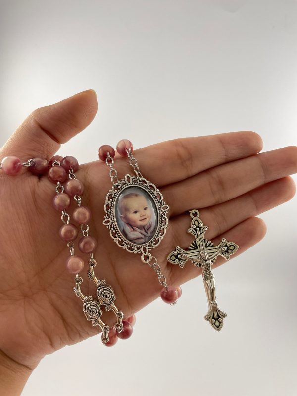 Pink Rosary, Personalized Photo Rosary Beads, Quinceanera, Anniversary- Custom Made with Your Picture, Memorial Remembrance