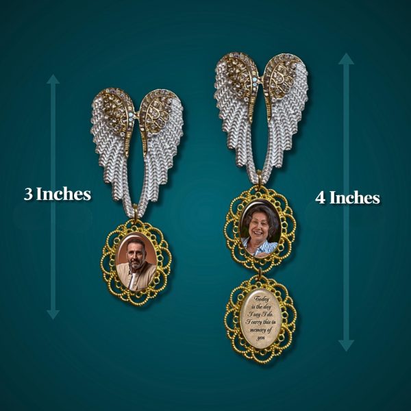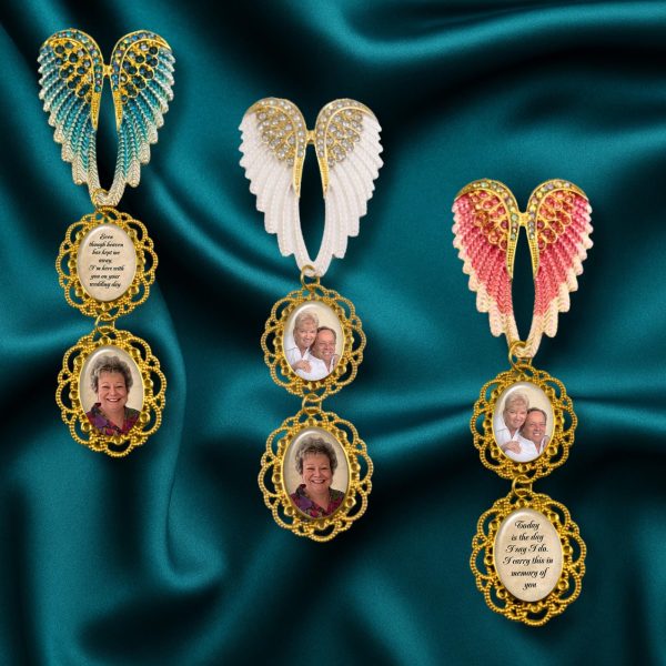 This elegant bouquet charm or ornament is guaranteed to bring tears of joy to anyone receiving it. The angel wings portion is available in "brooch style" (with pin in back) good for a bridal bouquet or you can select hanging “ornament style” with a chain. This is not a DIY kit. It is finished and ready for gift-giving in a luxurious felt lined box (no extra charge). Always FREE Standard First Class Shipping to U.S. shoppers!