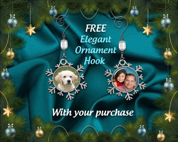 BEST OF ALL… in celebration of my Grand Opening, with each snowflake purchase in this listing, I am including a jeweled ornament Hook, a FREE-Floating Display Frame much like a mini shadow box frame and 24" silver tone necklace. A unique way to showcase your keepsake on your tree and then for year-round display. The Frame will showcase your charm which is held between two sheets of flexible PET film (a crystal clear transparent plastic) giving the appearance of the ornament being suspended in air. So, now you can be displayed it on a tabletop, desk, mantle, shelf or wall. You won’t regret purchasing this unique combo Photo Ornament Gift Set! Guaranteed to bring tears of joy! FREE First Class Shipping to U.S. shoppers!