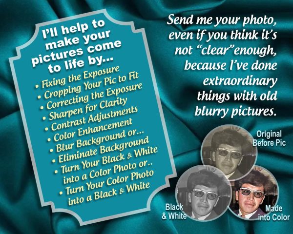 If you have a favorite photo and you are not sure it will work, just send it to me anyway and I will let you know the outcome. As a graphic artist, photo editing is a rewarding skill I love to show off. Just message me with your ideas and concerns. Typically proofs are sent 24-48 hours after receiving your photos. Any and all suggestions are welcomed.